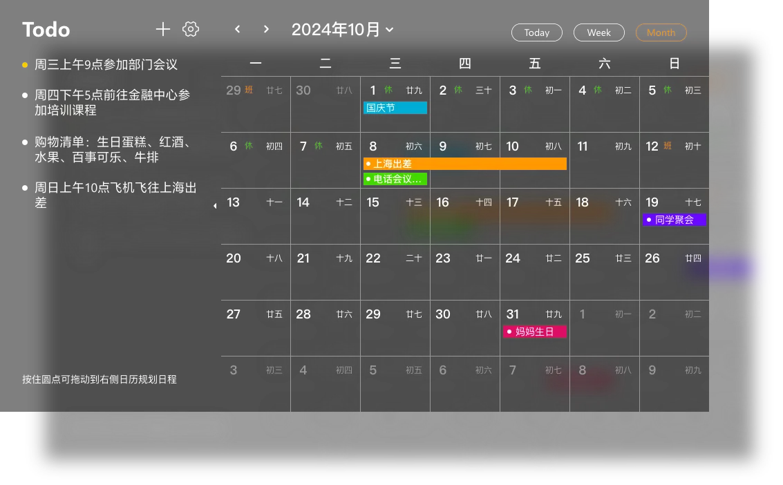 1、待办事项,笔记,月历和日程列表可以嵌入到您的系统桌面。无需打开应用程序,即可随时在桌面上管理您的待办事项、笔记和日程安排。