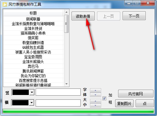 1、打开工具,首先读取表情包,如果没有需要的表情可以点击下一页