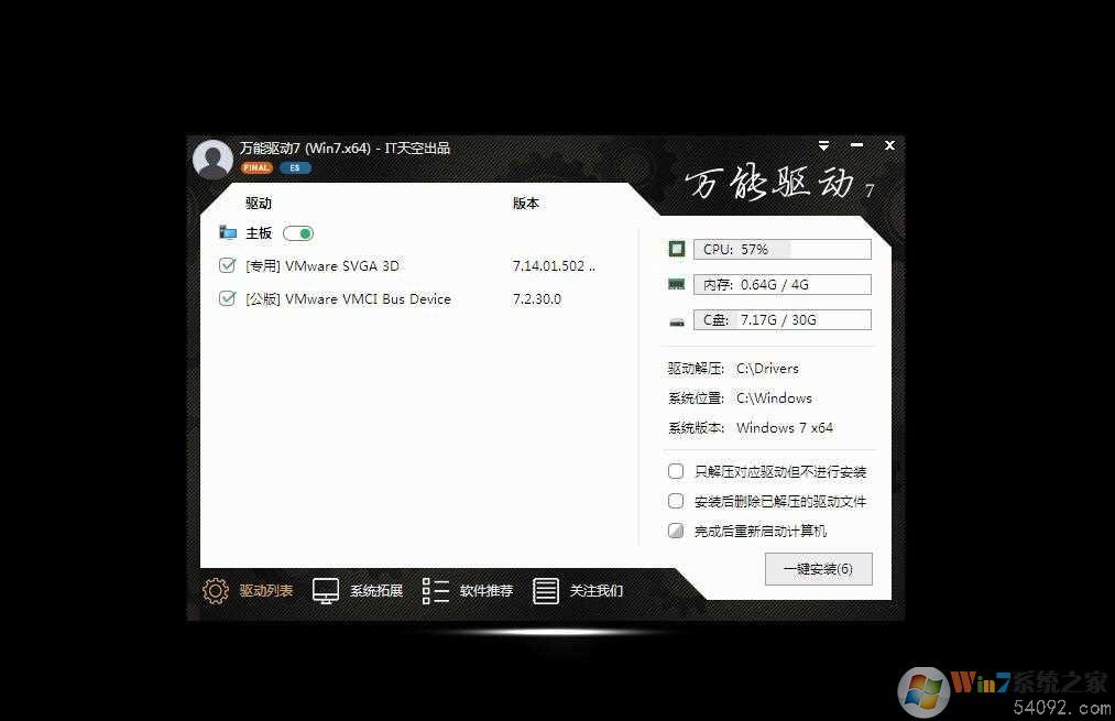2、更新驱动包为IT天空最新万能驱动V7.17