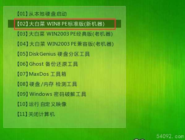 2、出现U盘启动界面后选择 WIN8PE进入,(版本低的WINPE可能会无法识别硬盘)