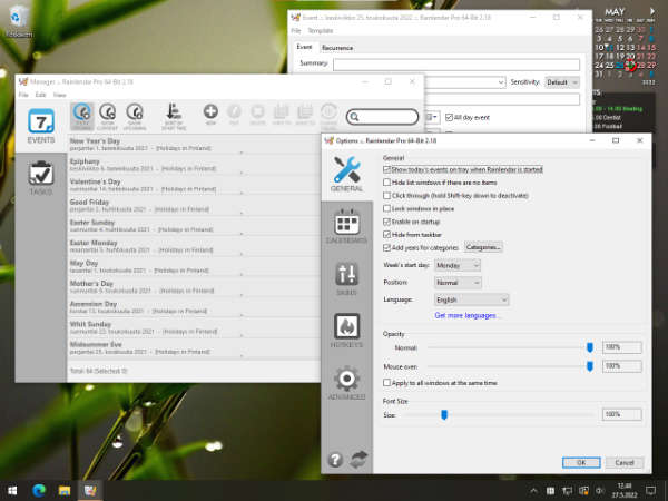 Rainlendar 已被翻译成 50 多种不同的语言,因此您可以用您的母语使用它。 在输入事件和任务时,也可以使用任何语言。